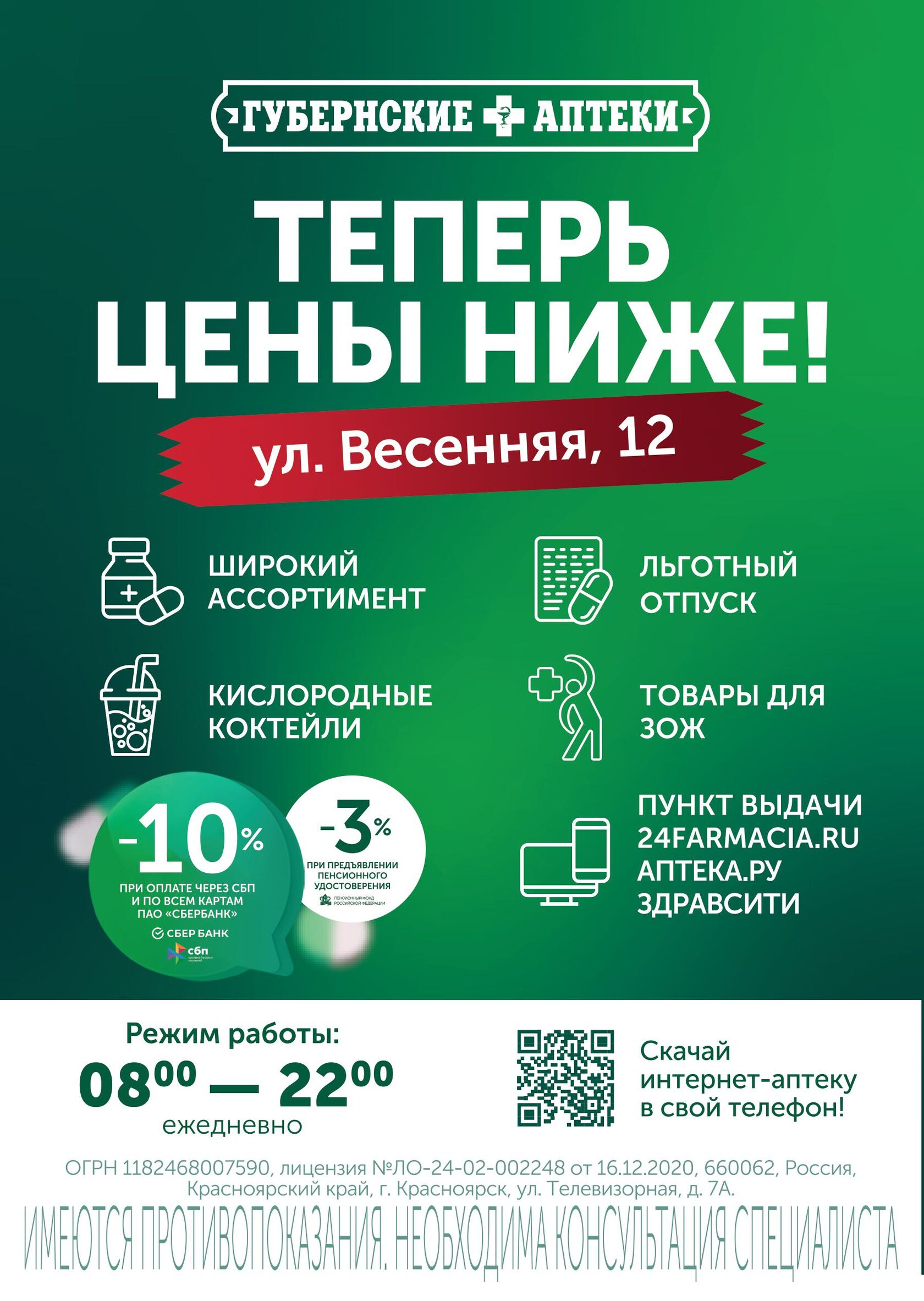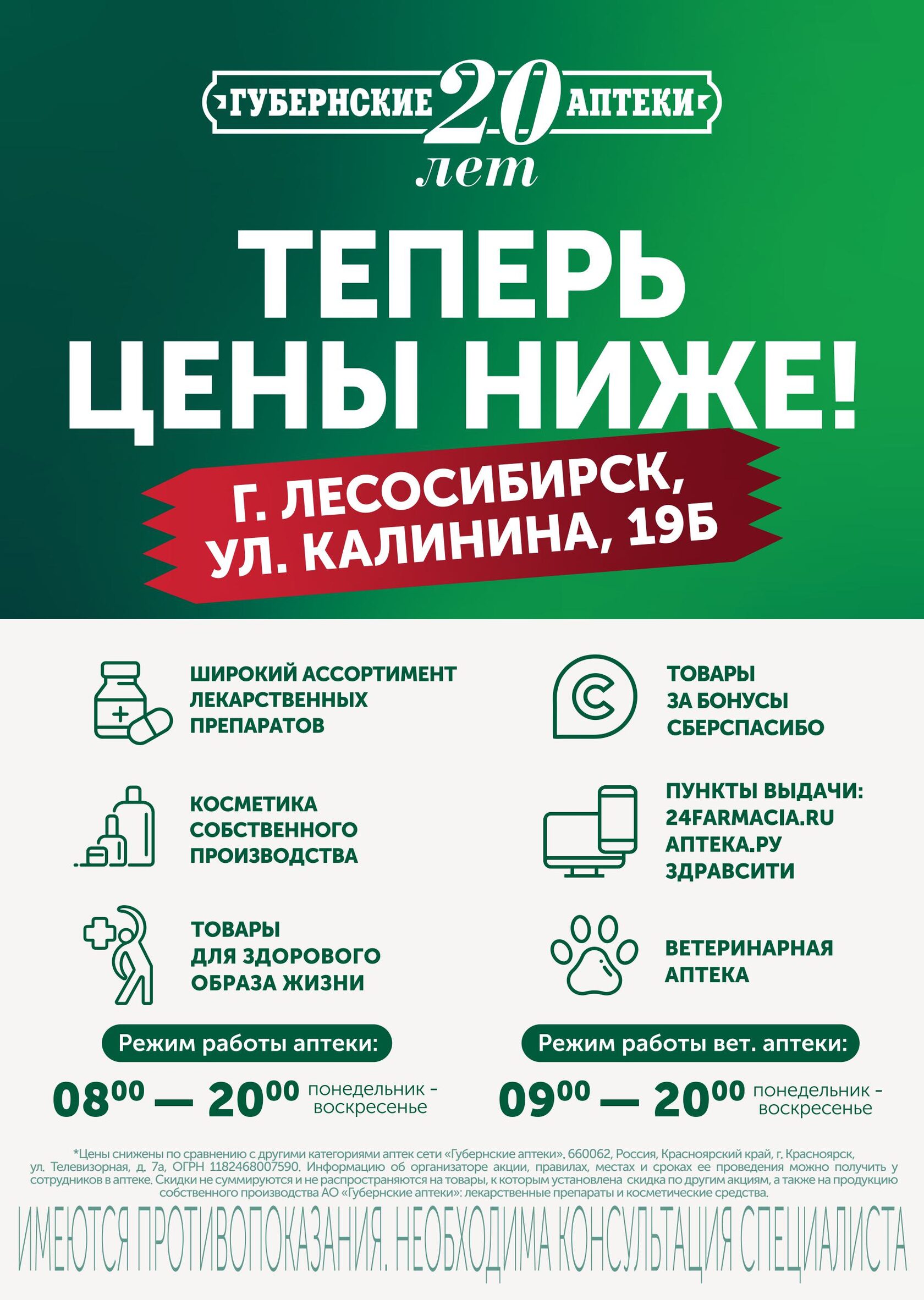 Акционерное общество «Губернские аптеки», 2020 г. Россия, 660062, г. Красноярск, ул. Телевизорная, д. 7а, ОГРН 1182468007590 от 16 февраля 2018 г.